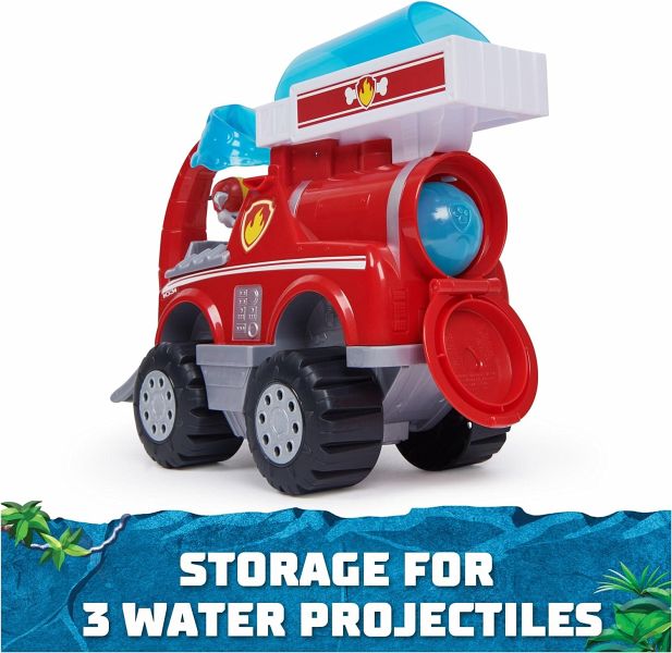 Paw Patrol Jungle Pups Marshall Deluxe Vehicle Elefanten-Feuerwehr-Spielzeug: Wenn es Zeit für eine aufregende Rettung ist, befestigen Sie Marshall in den Fahrersitz und rennen Sie zur Rettung, indem Sie die Elefantenstoßzähne und übergroßen Räder verwenden, um alle Hindernisse zu beseitigen Starten Sie 3 Projektile: Öffnen Sie das hintere Fach, um auf die 3 Wasserprojektile zuzugreifen. Laden Sie sie in die Projektilzuführung und ziehen Sie den Kofferraum wieder in Position, dann drücken Sie die Taste, um zu starten Exklusive Marshall-Spielzeugfigur: Marshall ist über 5 cm groß und sieht…mehr