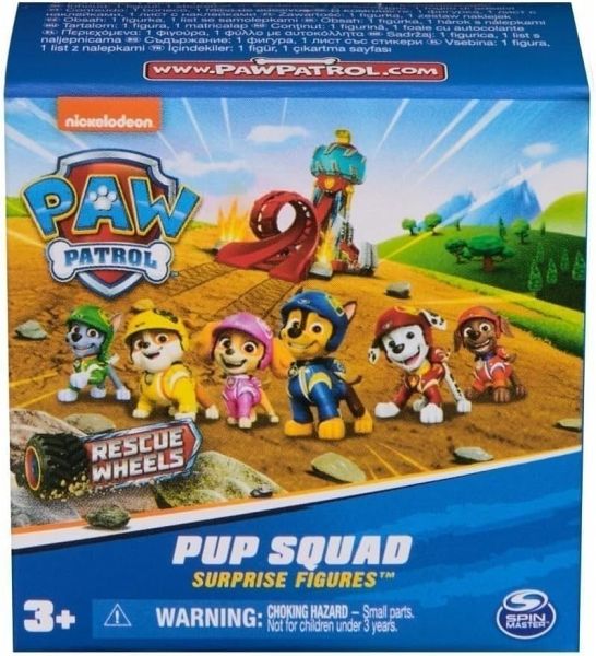 PAW Rescue Wheels Pup Squad Mini Fix36 Mit den Rescue Wheels Pup Squad Spielfiguren von PAW Patrol wartet beim Auspacken eine große Überraschung. Welcher Welpe verbirgt sich wohl im Karton? Jede der Pup Squad-Figuren hat 3 originale PAW Patrol-Aufkleber und passt mit knapp 5 cm perfekt in kleine Hände und jede Tasche. So können die Abenteuer auch unterwegs überall nachgespielt werden. Die Figuren mit realistischen Felldetails tragen ihre coole Rescue Wheels Uniform und sehen damit genau so aus wie in der TV-Serie. Die Pup Squad Figuren, Fahrzeuge und Spielsets sind in einem speziellen Maßstab gefertigt und bilden eine in sich geschlossene Spielwelt (sie sind also miteinander kombinierbar, aber durch den kleineren Maßstab passen sie nicht zu den klassischen Spielzeugen). Mit PAW Patrol-Spielzeug von Spin Master können Kinder ihre Fantasie entdecken und ihre motorischen Fähigkeiten durch Rollenspiele entwickeln, während sie gleichzeitig ihre Lieblingsszenen aus der Serie nachspielen. Überraschungsfiguren. Sortiert. Keine Charakterauswahl möglich. Geeignet für Kinder ab 3 Jahren. - sortiert - Sortierung variiert: Zufallsauswahl. Überraschungsinhalt. Inhalt: _ 1 Spielfigur (Skye, Chase, Rubble, Marshall, Zuma oder Rocky - Zufallsauswahl: keine Vorauswahl möglich) _ 3 Aufkleber Maße: 5,08 x 3,81 x 5,08 cm