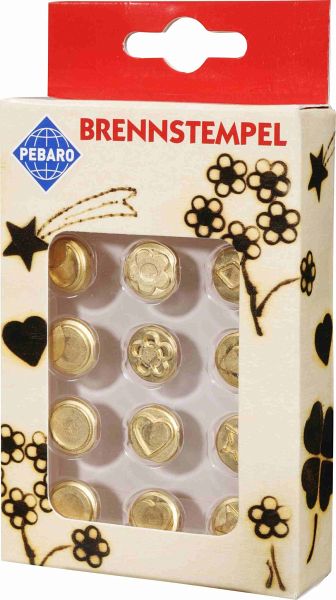- INHALT: 12 Brennstempel zum Einschrauben, passend zum Pebaro-Brandkolben (separat erhältlich), Motive: Blume, Raute, Mond, Kreis, Herz, Stern