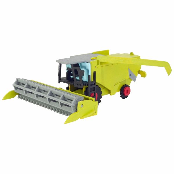Laubsägevorlage Mähdrescher - bedruckte DINA 4 Birkensperrholzplatte. Einfach an der Linie entlang sägen, zusammenbauen und selber bemalen. 3D-Modell mit Funktion! Endgröße 18 x 25 x 8 cm