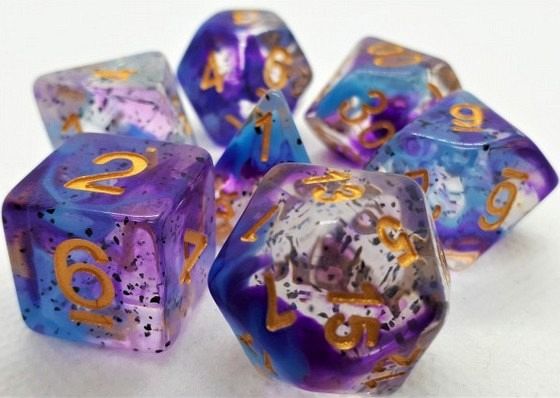 D4, D6, D8, D10 (0-9), D10 (00-90) D12 und D20.