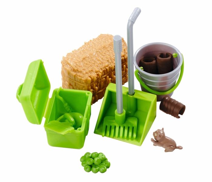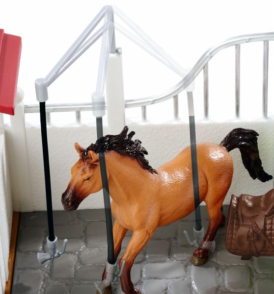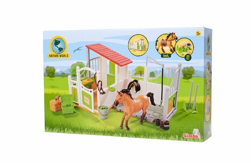 Pferdebox mit Waschplatz, 30x19cm, mit Pferd und Katze, Sattel, Zaum- zeug und Zubehör, CB, 3J+