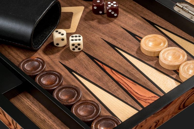 Würfel aus Urea, Würfelbecher aus Kunstelder, Spielsteine aus Pappelholz 32 mm