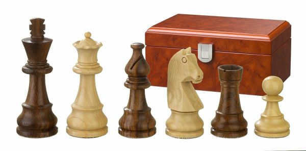 Sheesham und Buchsbaum natur, poliert, handgeschnitzter Springer, Kunstledersockel, in Figurenbox.