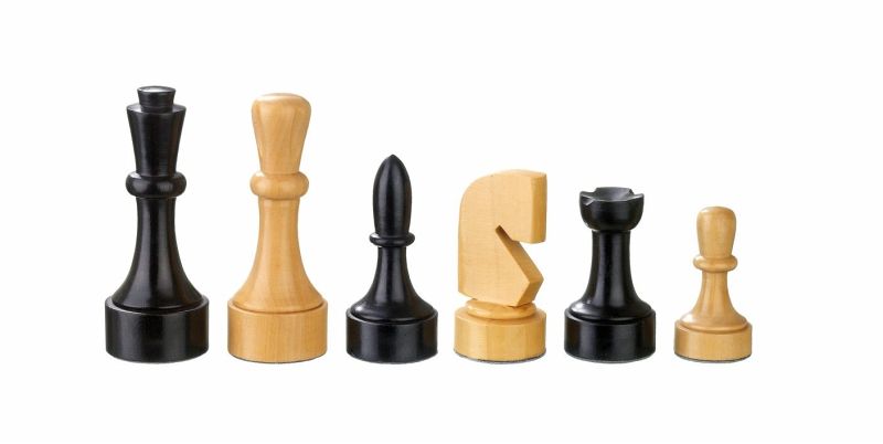 Modern Style-Schachfiguren, Königshöhe 95 mm, Buchsbaum, natur und schwarz gebeizt, doppelt gewichtet, Ledersockel, in Set-up Box