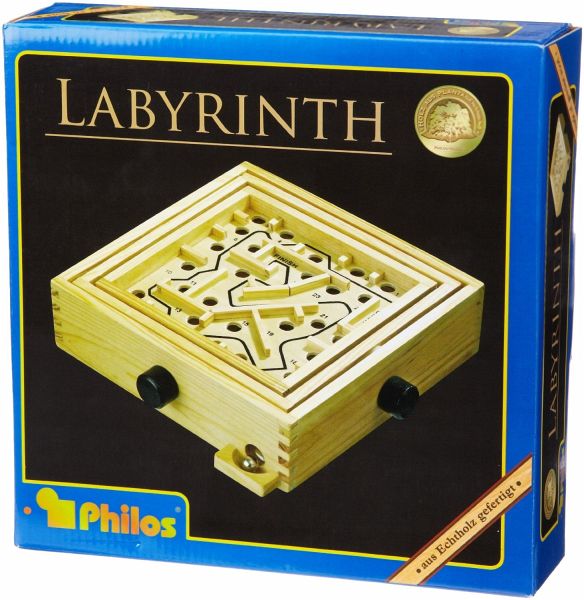 Mit Geschick lässt sich die Kugel durchs Labyrinth führen. Kiefer, Maße 215 x 215 x 53 mm. Anzahl Spieler: ab 1, Altersempfehlung: ab 8 Jahren, Spieldauer: ca. 10 Minuten