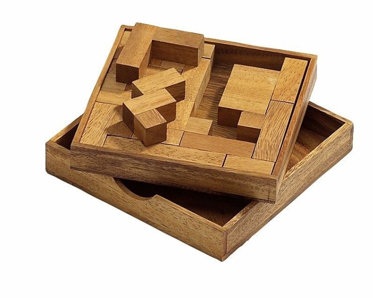 Dieses alte Kombinationsspiel kommt aus China. Es besteht aus 13 unterschiedlichen Teilen, die sich wiederum aus maximal 5 gleichen Untereinheiten zusammensetzen. Ziel dieses Spiels ist es, mit den 13 Teilen ein Quadrat zu legen und möglichst viele verschiedene Lösungen dafür zu finden. Weiterhin kann man mit 12 Formteilen (ohne das quadratische Teil) auch zwei- und dreidimensionale Figuren legen. In den Legevorschlägen sind nur einige Beispiele der vielfältigen Spielmöglichkeiten vorgegeben. Mit viel Geduld und Überlegung kann man auch eigene Bilder und Figuren entstehen lassen. Die Chinesen behaupten, es gäbe so viele Möglichkeiten die 13 Teile in einem Quadrat anzuordnen, dass man im Leben nicht alle Varianten finden würde. Daher kommt der Name „Spiel des Lebens“.