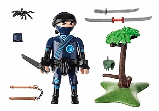 Das PLAYMOBIL Special Plus-Set Ninja mit Ausrüstung lädt ein in die spannende Welt des Ninja Kampfsports. Mit verschiedenen Waffen können realistische Kampfübungen nachgespielt werden. Die fröhlichen PLAYMOBIL Special Plus-Figuren versprechen jede Menge Spielspaß und sind ideal für Kinder ab 4 Jahren geeignet.