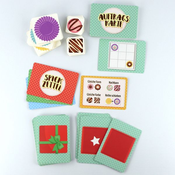 Denn Pralinen für dich hat statt zuckersüßer Kaloriensünden ein spannendes Gesellschaftsspiel zu bieten, bei dem du die erlesensten Pralinenbouquets kreieren musst, um am Ende gegen deine Mitspieler zu gewinnen.