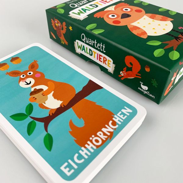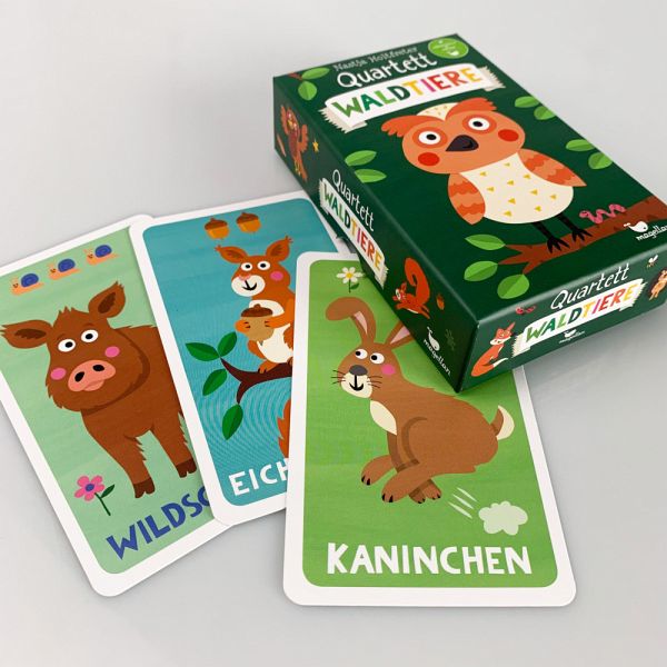Eins, zwei, drei und losgespielt! Wer sammelt die meisten Waldtier-Quartette? Dieses Quartett mit klassischem Spielprinzip mit Fuchs, Eichhörnchen, Hirsch und vielen Tieren mehr, ist schon für Kinder ab 5 Jahren geeignet und bringt großen Kartenspaß für die ganze Familie. Mit bunten Illustrationen von Nastja Holtfreter!