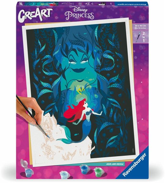 Coole Motive, leuchtende Farben und glänzender Lack für ein perfektes Finish. Das trendige Motiv Ariel and Ursula sorgt für großartigen Malspaß für Erwachsene ab 14 Jahren. Die Motivlinien sind bereits aufgedruckt und nummeriert und werden mit den fertig gemischten Acrylfarben ausgemalt. Das ist Malspaß mit Erfolgsgarantie für einen einzigartigen Wandschmuck. So einfach war malen noch nie!