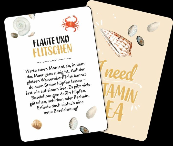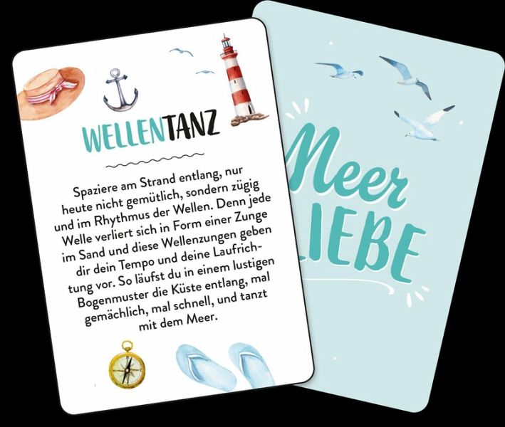 Die 50 unterhaltsamen Challenges in diesem handlichen Kartenset garantieren dir unvergessliche Geschichten und Erinnerungen für deinen nächsten Urlaub am Meer! Verbringe eine Nacht am Strand, erschaffe ein Kunstwerk aus Treibgut, befrage ein Muschel-Orakel oder probiere Action-geladene Wassersportarten aus. Dieses Reisespiel für unterwegs bietet eine perfekte Mischung aus Spaß und Abenteuer, das dir eine unvergessliche Zeit bescheren wird. Durch das handliche Kartenspiel-Format passen sie in jede Strandtasche oder Rucksack und sind so der ideale Begleiter beim nächsten Aufenthalt am Meer - ganz egal, ob du alleine reist, zu zweit oder als Gruppe.