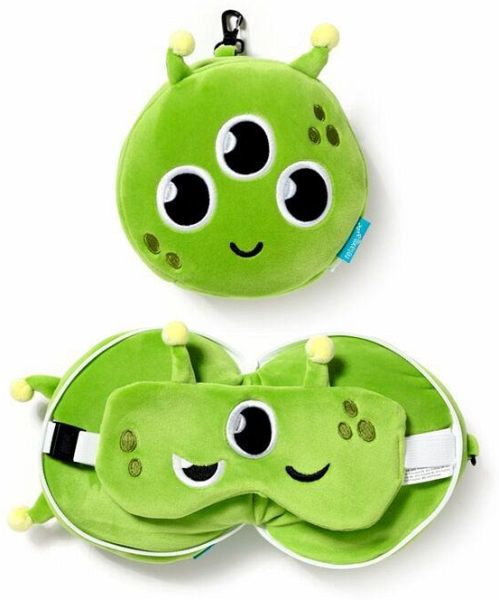 Das Relaxeazzz Space Cadets Weltraum Alien Reisekissen & Schlafmaske ist der ideale Reisebegleiter für alle, die ein bisschen galaktischen Komfort und ein intergalaktisches Design auf ihren Reisen lieben. Mit seinem coolen Alien-Design und der praktischen Funktionalität sorgt dieses Kissen für eine entspannte Reise und lässt dich in eine Welt voller Fantasie eintauchen! Das Kissen ist in Form eines Weltraum-Alien gestaltet, mit großen, neugierigen Augen und einem verspielten, futuristischen Look. Es bietet sanfte Unterstützung für Kopf und Nacken, sodass du auch auf langen Reisen bequem schlafen kannst. Die Schlafmaske lässt sich einfach im Inneren des Kissens verstauen und kann bei Bedarf entnommen werden. Sie blockiert störendes Licht und sorgt dafür, dass du auch in helleren Umgebungen ungestört schlafen kannst.
