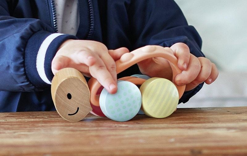Die Rennschildkröte Rike ist nicht nur ein niedliches Rollspielzeug, sondern mit ihrem Körper aus Naturkautschuk auch als Beißring geeignet. Kopf und Rollen sind aus Holz, wobei jedes Rad mit einem anderen farbenfrohen Muster überrascht. Ins Rollen kommt Rike dank beweglichem Körper mit Struktur, den kleine Händchen bestens greifen können.