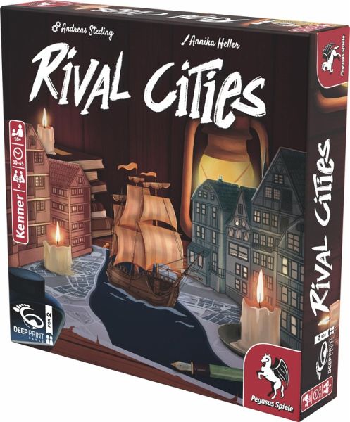 Im Stadtduell Rival Cities kommt es auf geschickt eingesetzte Ablenkungsmanöver ebenso an wie auf die richtige Einschätzung der gegnerischen Absichten. Im Laufe von maximal sieben Saisons sind die Städte immer abwechselnd am Zug. Dabei kann das Tintenfass auf ein beliebiges Feld gezogen werden, um die entsprechenden Aktionen auszuführen. Die richtige Balance zwischen Kosten und Nutzen ist hier entscheidend, denn weite Wege Kosten mehr Waren. Aktionen wie Produktion oder Warentausch füllen das eigene Lager, während eine Spende zu den punktebringenden Sternmarkern verhelfen kann. Ob diese jedoch wirklich etwas wert sind, wird sich nur zeigen, wenn nicht eine der Städte durch einen uneinholbaren Vorsprung in einem der vier Erfolgsbereiche – Ansehen, Prozesse, Schiffe oder Bündnisse – den Sofortsieg erlangt.