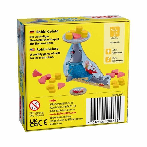 Sommer, Sonne, Strand und jetzt ein Eis! Robbi Gelato balanciert geschickt ein Tablett mit Eis auf seiner Schnauze. Das Eis muss so zu platzieren sein, dass es nicht vom Tablett rutscht, wenn sich Robbi bewegt. Wer am Ende kein Eis mehr übrig hat, gewinnt.