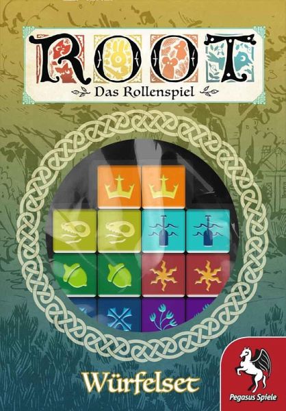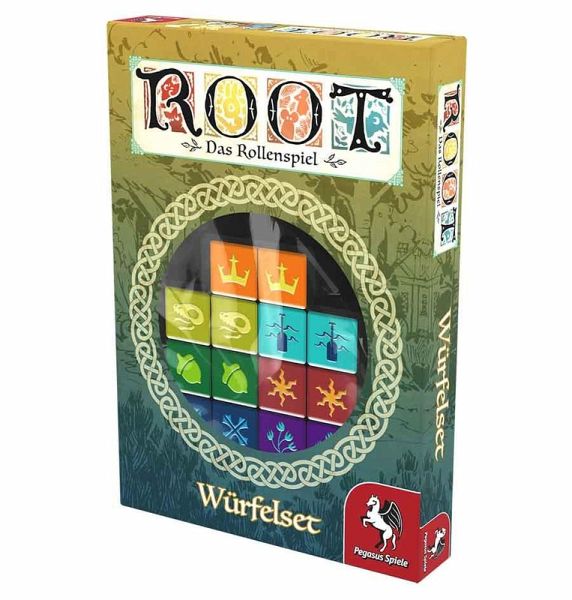 Dieses Würfelset für Root - Das Rollenspiel enthält 14 sechseitige Würfel. Je eines der sieben Würfelpaare trägt die Farbe und das Symbol einer der sieben Fraktionen des Waldlandes: