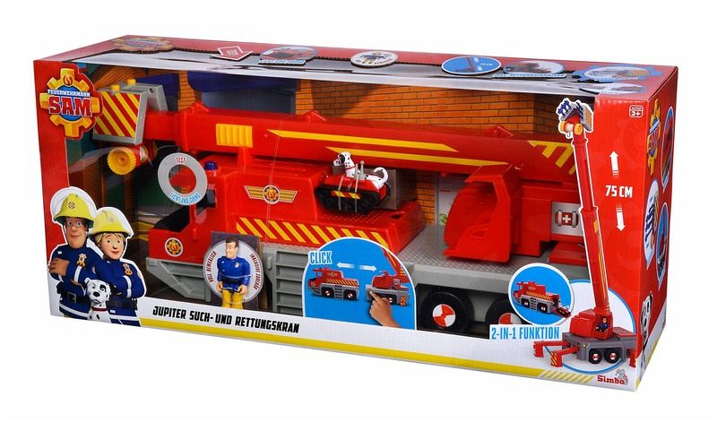 Sam Rettungskran 2-in -1 getrennt oder als Kranfahrzeug bespielbar, Sam, Rada, Roler Fahrzeug, Zubehör, L:50cm, Try me, WB, 3J+