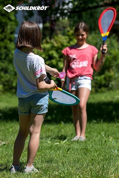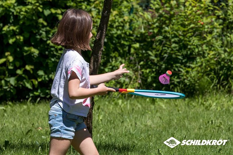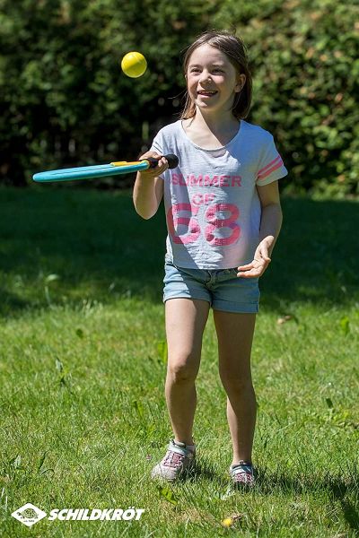 Die überdimensionalen Schläger sind mit einem elastischen Netz bespannt, ideal für Kinder geeignet.