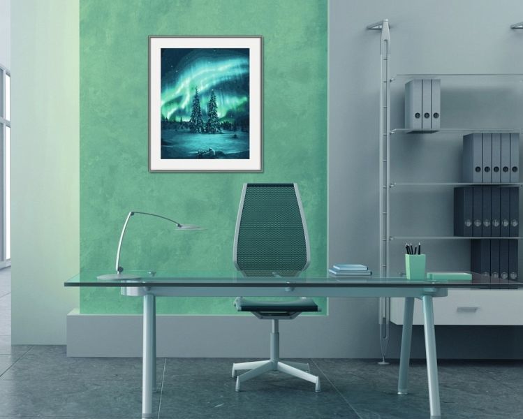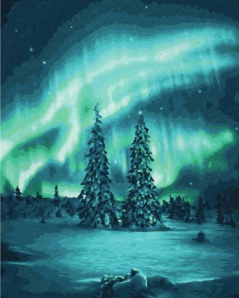 Das Naturphänomen der Polarlichter zieht alle Menschen in ihren Bann. Die spektakulären Lichterscheinungen am Nachthimmel regen zum Träumen an und entführen in eine spannende Fantasie- und Fabelwelt. Die in grünlich-bläuliches Licht eingetauchte Winterlandschaft verstärkt diese Mystik und verleiht dem Bild eine ganz besondere Ausdrucksstärke. Auch der Hobbymaler taucht ein in diese Welt und ist begeistert von den magischen Strahlen des Lichts.