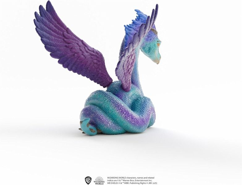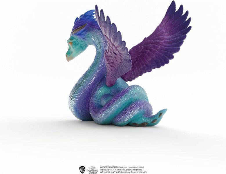Der Occamy hat seinen langen, schimmernden Schlangenkörper zu einem kompakten Paket geknotet und breitet seine großen Flügel aus. Er hebt den Kopf und beobachtet aufmerksam, was vor sich geht. Wenn nötig, kann sich das Fabelwesen sofort in die Luft erheben und wie der Wind davonfliegen. Der Occamy kann sich aber auch ganz klein machen und sogar in eine Teekanne passen. So zeigt sich dieses schöne Wesen nur, wenn es will. Wahrlich bemerkenswert!