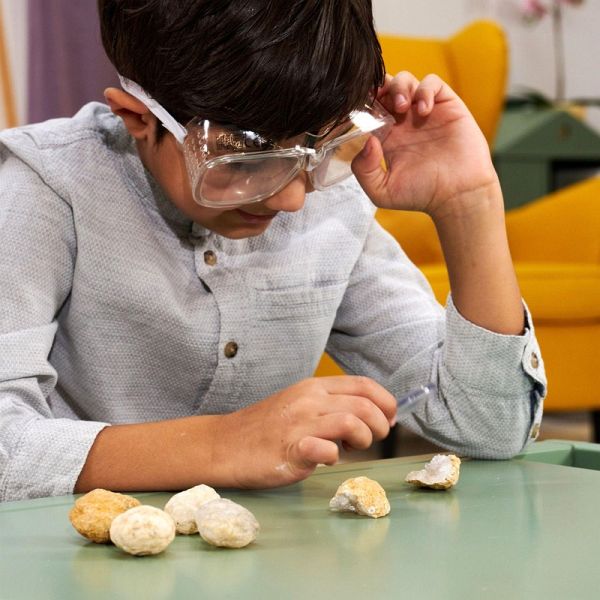 5 echte Geoden, je 3-4cm, inkl. Schutzbrille und Lupe, CB, 3J+