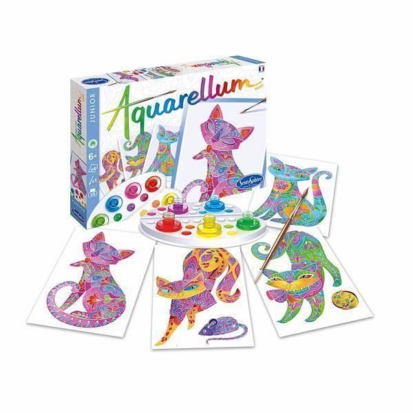 Inhalt: 4 Ausmalbilder «Katzen» (18 x 25 cm), 1 hochwertiger Aquarellpinsel, 1 Mischpalette, 5 Tintenflakons und 1 Pipette. Inklusive Anleitung zur Farbwahrnehmung.