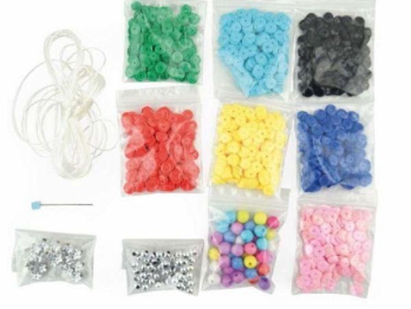 Bastelset für Armbänder aus Pailletten Inhalt: Pailletten, Perlen, elastischer Faden und Nadel Größe: 22.7 x 19 x 4.2 cm