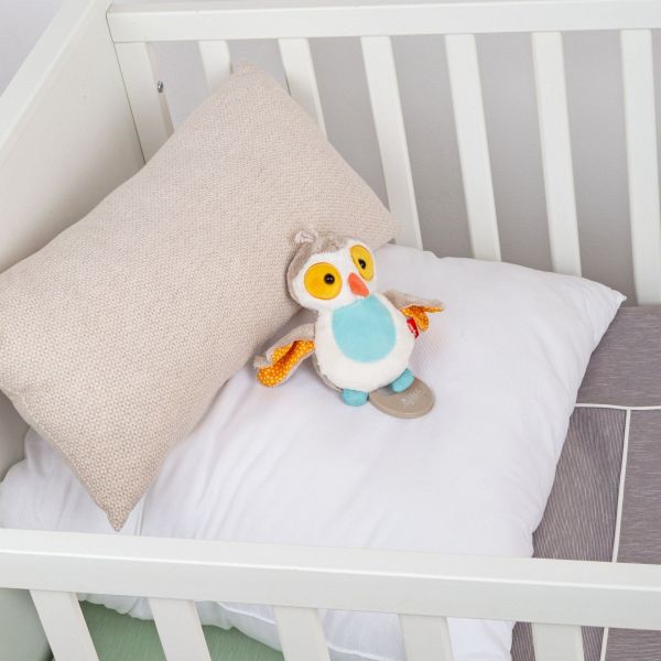 Harry Potter Fans aufgepasst: Die süße Eule ist standardmäßig mit einem Spielwerk ausgestattet, dass die Harry Potter Theme abspielt. Die etwa 14 cm große Spieluhr ist der perfekte Begleiter für Babys und Kleinkinder und somit das ideale Geschenk zur Geburt oder Taufe. Das mechanische Spielwerk lässt sich durch einfaches Ziehen starten. Auch zum Spielen und Kuscheln ist die weiche Eule mit den großen Augen gut geeignet. Er bietet zahlreiche Greifmöglichkeiten die zur Entwicklung der motorischen Fähigkeiten beitragen, wie z.B. die langen Flügel oder die geknoteten Kordeln am Kopf. Die schwarzen Kunststoffaugen sind mit Sperrscheiben auf der Rückseite fixiert. Um die Befestigung zu bestätigen, wird ein Zugtest durchgeführt. Dabei wird per Zuggerät für 10 Sekunden gezogen und somit die korrekte Fixierung bestätigt. Der Körper ist weich mit hygienischer Polyesterwatte gefüllt. Die kuschelig weichen Stoffe sind hochwertig verarbeitet und halten auch häufiger Wäsche stand. Das Spielwerk nimmt man zum Waschen heraus - einfach den Sicherheitsreißverschluss mit einer Büroklammer (siehe Anleitung) öffnen und schon kann die Spielfigur bei 30 °C in der Waschmaschine gewaschen werden. Die Spieluhr ist von Anfang an für das Baby geeignet und wird oftmals bereits vor der Geburt auf Mamas Bauch gelegt. Schlaf gut, kleiner Liebling! sigikid legt besonderen Wert auf ausgesuchte Materialien und durchdachtes Design. Durch akkreditierte Prüfinstitute finden in der Produktentwicklung und Produktion ständig Prüfungen gemäß der Spielzeugrichtlinie 2009/48/EG statt. Die Marke sigikid steht für kuschelige Produkte, die Emotionen wecken und Eltern und Kindern gleichermaßen ein gutes Gefühl vermitteln. Seit über 50 Jahren folgt sigikid einem klaren Leitsatz: FIRST CLASS FOR KIDS! Wir machen die Welt für Familien von Anfang an kuscheliger und bunter.