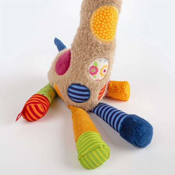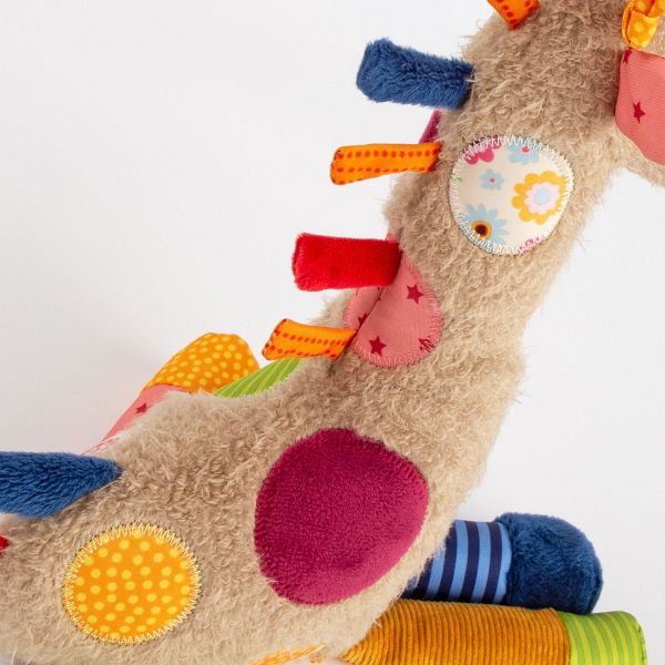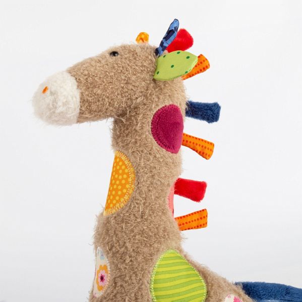 Patchwork Sweetys erobern Kinderherzen im Sturm! Die Schmusetiere mit ihrem einzigartigen Design sind unvergleichlich kuschelig und so schön bunt wie Kinder es eben lieben! Das Markenzeichen der außergewöhnlichen Kuscheltiere: Farbenfroher Materialmix, bunte Streifen und tolle Muster kombiniert mit hochwertigen und wunderbar weichen Plüschen. Umarmen, schmusen, hinter sich herziehen, überall hin mitnehmen, drücken, streicheln, Geheimnisse erzählen, Abenteuer erleben - die Sweety Giraffe macht all das bedenkenlos mit. Der weiche Bouclette-Plüsch in Braun und die vielen farbenfrohen Details aus bunt gemusterten Stoffen verleihen der knuffigen Spiel- und Schmusegiraffe eine ganz besondere Haptik und Optik. Ihr kindgerechtes Design macht sie zu einem perfekten Begleiter, Tröster und Spielgefährten für Jungen und Mädchen gleichermaßen. Die kunterbunten langen Arme und Beine geben der Giraffe den typischen sigikid Schlenker-Look und bieten Babys gute Greifmöglichkeiten. Das Stofftier ist weich mit hygienischer Polyesterwatte gefüllt und im Po und den Hufen trägt es ein wenig Kunststoffgranulat dadurch kann das hübsche Plüschtier prima sitzen. Das Kunststoffgranulat ist in ein zusätzliches Baumwollsäckchen eingenäht so bleiben die Kügelchen garantiert an Ort und Stelle. Die schwarzen Kunststoffaugen sind mit Sperrscheiben auf der Rückseite fixiert. Um die Befestigung zu bestätigen, wird ein Zugtest durchgeführt. Dabei wird per Zuggerät für 10 Sekunden gezogen und somit die korrekte Fixierung bestätigt. Und wird die unternehmungslustige Giraffe einmal dreckig, so kann sie problemlos bei 30°C in der Waschmaschine gewaschen werden und hält dank ihrer qualitativ hochwertigen Verarbeitung auch häufiger Wäsche stand. Das außergewöhnliche Patchwork-Kuscheltier mit einer Größe von ca. 36 cm ist für Babys und Kinder ab der Geburt geeignet - es ist somit ein ideales Geschenk zur Geburt oder Taufe! sigikid legt besonderen Wert auf ausgesuchte Materialien und durchdachtes Design. Um die Sicherheit unserer Produkte zu gewährleisten, werden von akkreditierten Prüfinstituten regelmäßig Prüfungen gemäß dem aktuell geltenden (europäischen) Recht durchgeführt. Die Marke sigikid steht für kuschelige Produkte, die Emotionen wecken und Eltern und Kindern gleichermaßen ein gutes Gefühl vermitteln. Seit 55 Jahren folgt sigikid einem klaren Leitsatz: FIRST CLASS FOR KIDS! Wir machen die Welt für Familien von Anfang an kuscheliger und bunter.