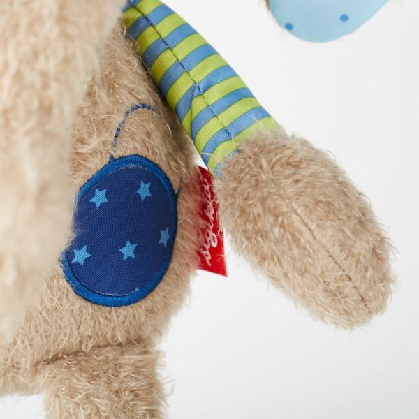 Patchwork Sweetys erobern Kinderherzen im Sturm! Die Schmusetiere mit ihrem einzigartigen Design sind unvergleichlich kuschelig und so schön bunt wie Kinder es eben lieben! Das Markenzeichen der außergewöhnlichen Kuscheltiere: Farbenfroher Materialmix, bunte Streifen und tolle Muster kombiniert mit hochwertigen und wunderbar weichen Plüschen. Umarmen, schmusen, hinter sich herziehen, überall hin mitnehmen, drücken, streicheln, Geheimnisse erzählen, Abenteuer erleben - der putzige Sweety-Elefant in Grau und Blau macht all das bedenkenlos mit. Der Kuschelplüsch und die vielen unterschiedlichen Stoffe verleihen dem Stofftier eine ganz besondere Haptik und Patchwork-Optik, sie machen es zu einem unvergleichlich weichen Begleiter für Jungen und Mädchen. Die langen Arme und Beine geben dem Rüsseltier den typischen sigikid Schlenker-Look und bieten Babys gute Greifmöglichkeiten. Der Dickhäuter ist weich mit hygienischer Polyesterwatte gefüllt und im Po trägt er ein wenig Kunststoffgranulat dadurch kann der Elefant prima sitzen. Das Kunststoffgranulat ist in ein zusätzliches Baumwollsäckchen eingenäht so bleiben die Kügelchen garantiert an Ort und Stelle. Die schwarzen Kunststoffaugen sind mit Sperrscheiben auf der Rückseite fixiert. Um die Befestigung zu bestätigen, wird ein Zugtest durchgeführt. Dabei wird per Zuggerät für 10 Sekunden gezogen und somit die korrekte Fixierung bestätigt. Das Kuscheltier ist problemlos bei 30°C in der Waschmaschine waschbar und hält auch häufiger Wäsche stand. Der außergewöhnliche Elefant mit einer Größe von ca. 26 cm ist für Babys und Kinder ab der Geburt geeignet - er ist somit ein ideales Geschenk zur Geburt oder Taufe! sigikid legt besonderen Wert auf ausgesuchte Materialien und durchdachtes Design. Die Marke sigikid steht für kuschelige Produkte, die Emotionen wecken und Eltern und Kindern gleichermaßen ein gutes Gefühl vermitteln. Seit über 50 Jahren folgt sigikid einem klaren Leitsatz: FIRST CLASS FOR KIDS! Wir machen die Welt für Familien von Anfang an kuscheliger und bunter.