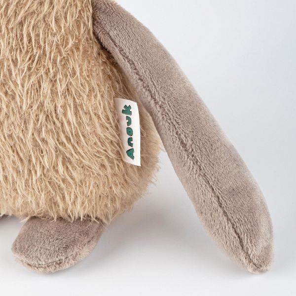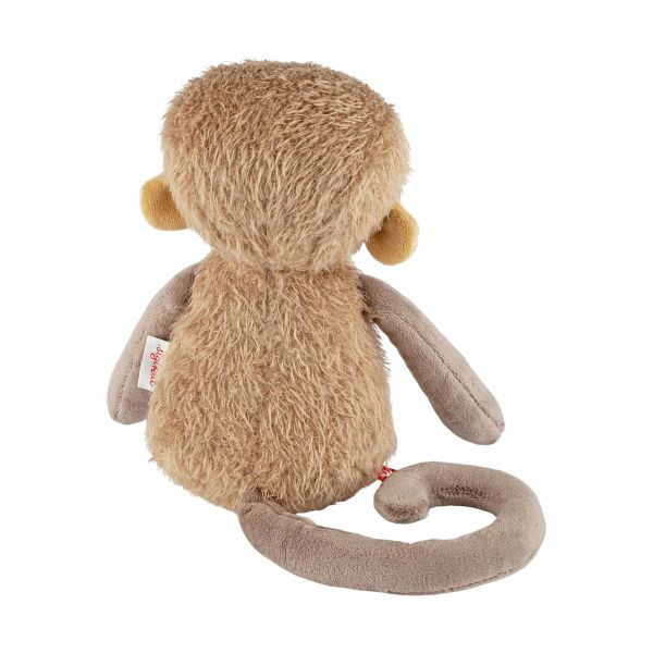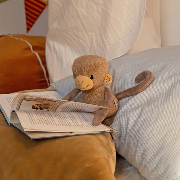 Affi ist aus kuschelweichem Bouclette – und Mircroplüsch gefertigt und mit Polyesterwatte gefüllt. Sein niedliches Gesicht ist aufgestickt. Somit ist der süße Affe problemlos bei 30 °C in der Waschmaschine waschbar. Der Unterkörper ist mit etwas Granulat (im separatem Säckchen) gefüllt, so hat der Affi einen stabilen Sitz.