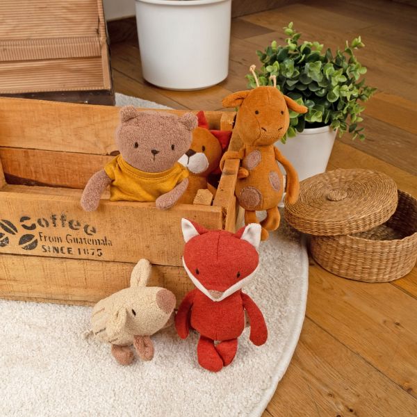 Diese Mini-Version von Mister O'Luis Freund Ferdinand besteht aus Jersey und Velours, beides aus weicher Baumwolle. So wird der süße Fuchs besonders anschmiegsam und passt dank seiner handlichen Größe auch noch lässig mit in den Autositz oder in das letzte freie Eckchen im Übernachtungskoffer.