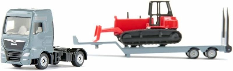 MAN Lkw mit Planierraupe die Bühne für große Maschinen - Dieses Jahr rollt siku mit einer echten Baustellen-Sensation an: Der MAN Lkw mit Tieflader fährt in gleich drei unschlagbaren Varianten vor. Ob mit Straßenwalze, Baggerlader oder Planierraupe auf dem Rücken dieser Tieflader ist kein Laster wie jeder andere, sondern das VIP-Shuttle, das die Helden der Baustelle in Bewegung bringt. Und das passt, denn die Marke MAN steht seit über 100 Jahren für echte Schwergewichte, die nicht nur tonnenweise Material transportieren, sondern auch Träume von Ingenieuren und Baumeistern weltweit bewegen. Von Großbaustellen in der Realität bis hin zu den kleinen Projekten im Kinderzimmer dieser Name ist mehr als ein Logo, es ist ein Versprechen. Ein Versprechen, das siku mit seinem Tieflader-Modell und dem perfekt abgestimmten Baustellen-Trio auf die Spielfläche bringt. Denn wenn die Ladung abgeladen wird, gibt es kein Halten mehr: Der Baggerlader gräbt nach verschollenen Sofaschätzen, die Planierraupe glättet den Weg für das nächste Kinderzimmer-Großprojekt, und die Straßenwalze? Sie bügelt nicht nur den Teppich glatt, sondern auch jeden Zweifel daran, wer hier der Boss auf der Baustelle ist.