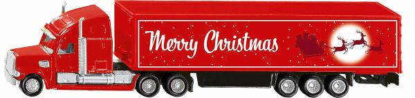 Festlicher Fahrspaß für kleine Weihnachtstrucker! Der Freightliner Weihnachtstruck bringt die Weihnachtsfreude direkt ins Kinderzimmer. In leuchtendem Rot, inklusive festlichem Merry Christmas-Schriftzug und zauberhaften Weihnachtsmotiven, sorgt dieses detailreiche Modell für festliche Spielmomente. Die robuste US-Zugmaschine ist mit glänzenden Chromdetails verziert. Mit seinen gummierten Rädern rollt der Truck sicher und ruhig über jeden Untergrund. Dank der kompakten Größe im Maßstab 1:87 ist er perfekt für kleine Hände und großes Spielvergnügen geeignet. Ein echtes Highlight für die Weihnachtszeit der Freightliner Weihnachtstruck bringt leuchtende Augen und spannende Abenteuer zu allen kleinen siku Lkw-Fans!