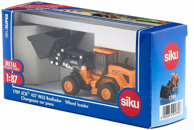 Detailliertes Spielzeugmodell eines JCB 457 WLS Radladers zum Spielen und Sammeln, Für kleine und große Fans von Baustellenfahrzeugen - Robustes und stabiles Design dank Metallkarosserie, Sehr gute Rolleigenschaften durch Bereifung aus Gummi, Bewegliche Schaufel, Knickgelenk - Ideal als Geschenk für Kinder zu bspw. Geburtstagen oder für zwischendurch geeignet, aber auch als Dekoration für Erwachsenen-Geburtstage oder Hochzeitsgeschenke - Perfekt zum platzsparenden Mitnehmen, Langanhaltender Spielspaß durch unzählige Kombinationsmöglichkeiten innerhalb der siku-Spielwelt - Lieferumfang: 1x siku 1789 JCB 457 WLS Radlader, Maßstab: 1:87, Material: Metall/Kunststoff, Abmessungen: 10,8 x 3,8 x 4,0 cm, Gewicht: 0,0813 kg, Farbe: Gelb/Schwarz, Serie: SIKU SUPER