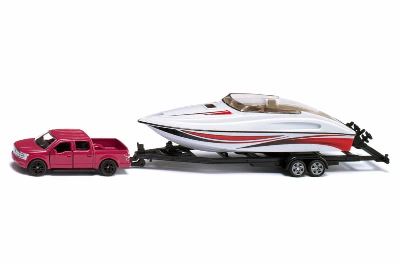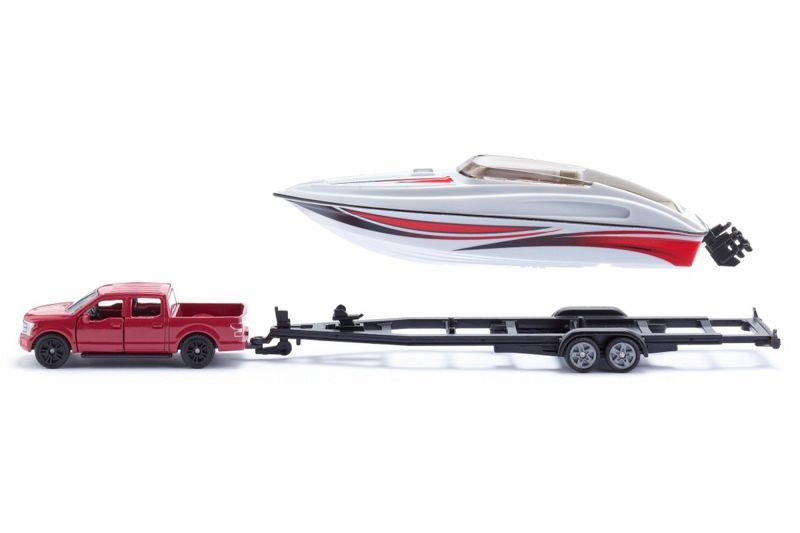 Der Ford F-150 ist der Inbegriff des American Way of Life und begeistert seit über 30 Jahren als meistverkauftes Fahrzeug in den USA. Dieser kraftvolle Pick-up ist groß, robust und vielseitig perfekt für jedes Abenteuer. Mit diesem Spielzeugset wird der ikonische Ford F-150 in einer spannenden Kombination geliefert: Ein starkes Motorboot reist auf einem stabilen Anhänger mit und sorgt für endlosen Spielspaß auf dem Kinderzimmer-Teppich! Der Ford F-150 beeindruckt mit seinem authentischen Design, gummierten Reifen und einer markanten Ladefläche, die jede Menge Platz für Fantasie-Abenteuer bietet. Natürlich verfügt der Pick-up auch über eine Anhängerkupplung, mit der der hochwertige Anhänger sicher verbunden wird. Das Boot selbst ist eine detailgetreue Nachbildung mit einer glänzenden Lackierung und realistischen Elementen, die Kindern das Gefühl geben, mitten im Abenteuer zu sein. Das Motorboot ist nicht nur optisch ein Highlight es ist sogar schwimmfähig! Ob auf dem Spielteppich oder in der Badewanne, das Boot bringt Spaß auf jeder Wasserstraße. Mit seinem robusten Tandem-Achs-Trailer aus Metall lässt es sich leicht ankuppeln und sicher transportieren. Ob Ausflug zum See, ein spannendes Bootsrennen oder ein Roadtrip durch die weite Prärie mit dem Ford F-150 und seinem Motorboot gibt es für kleine Abenteurer immer etwas zu entdecken. Gefertigt aus hochwertigen und sicheren Materialien, sorgt dieses Spielzeug für langanhaltenden Spaß und ist ein Must-have für jeden kleinen Auto- und Boots-Fan!