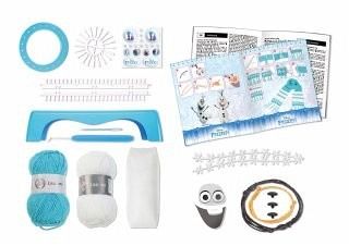 Enthält eine hochwertige Strickbank, -ring, -haken, Kunststoffnadel, 2 Wollknäuel und Accessoires. Mit ausführlicher Anleitung. Ab 6 Jahren.