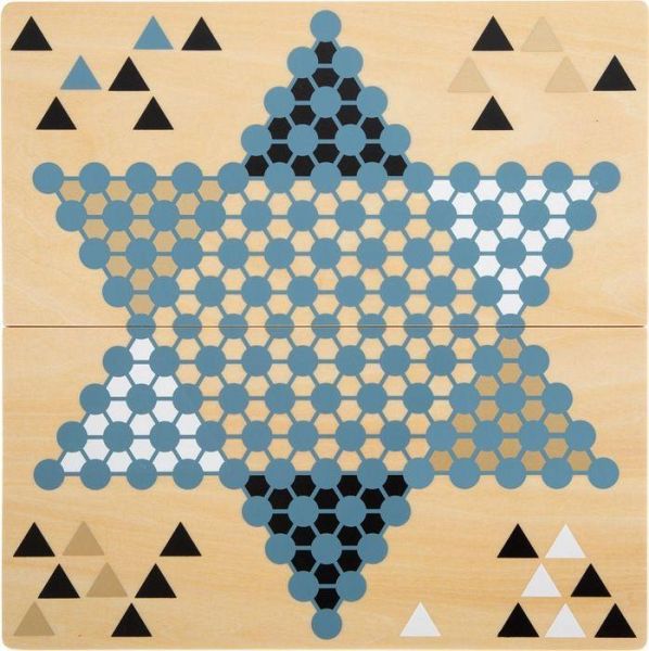 - Ausstattung: Material: Holz; - 2-in-1: beidseitig bedrucktes Spielbrett mit Sternhalma und Barrikade für doppelten Spielspaß