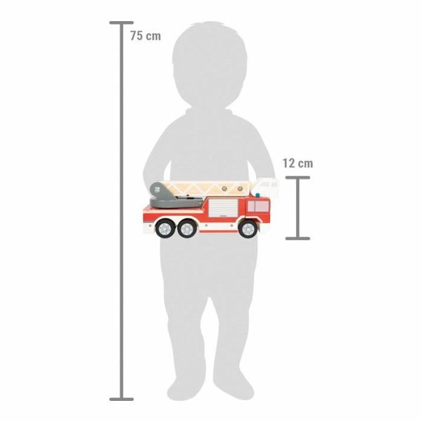 Dieses Feuerwehrauto aus Holz ist das ideale Fahrzeug für kleine Feuerwehrleute im Einsatz. Mit seiner 360°-drehbaren sowie schwenk- und ausziehbaren Leiter ermöglicht es das klassische Einsatzfahrzeug, Brände in luftiger Höhe mühelos zu erreichen und zu löschen. Der Korb am Ende der Drehleiter lässt sich kinderleicht per Hand steuern, sodass die Rettung von Menschen oder Tieren spielerisch nachgestellt werden kann. Die gummierten, geräuscharmen Reifen sorgen für ein leises und sanftes Rollen, während die robuste Sicherungsstrebe die Drehleiter stabil hält. Das Feuerwehrfahrzeug überzeugt durch seine durchdachte Gestaltung und die vielseitige Bespielbarkeit ein Must-have für jeden Fuhrpark im Kinderzimmer. Durch das Manövrieren des Leiterwagens lernen Kinder, ihre Hand-Augen-Koordination zu verbessern, während sie gleichzeitig ihre Vorstellungskraft nutzen, um Rettungseinsätze nachzuspielen. Zudem fördert das Spielen mit Fahrzeugen das soziale Miteinander, wenn Kinder gemeinsam Rettungseinsätze planen und umsetzen.