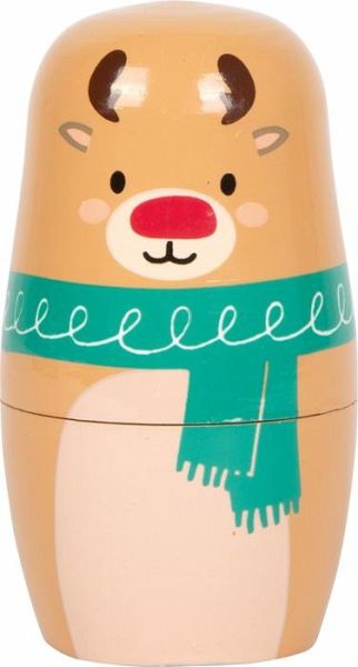 Weihnachtsfreude zum Ineinanderstecken! Diese liebevoll gestalteten Matrjoschkas aus Holz bringen den Zauber der Weihnachtszeit direkt ins Kinderzimmer. Mit Motiven wie Weihnachtsmann, Rentier, Pinguin und Schneemann laden sie zum Stecken, Stapeln und Spielen ein. Perfekt geeignet für kleine Hände und ein dekorativer Blickfang in der Winterzeit. Auch ideal als kleine Geschenke im Adventskalender oder beim Wichteln! Die Weihnachts-Matrjoschkas bestehen aus Holz und überzeugen durch ihr kindgerechtes Design. Jede der vier Figuren, vom Weihnachtsmann bis zum Schneemann, ist mit liebevollen Details bemalt und strahlt Weihnachtsstimmung aus. Dank der unterschiedlichen Größen können die Figuren ineinandergesteckt oder einzeln aufgestellt werden. Das fördert spielerisch die Feinmotorik und die Hand-Augen-Koordination. Ob als Spielzeug oder als weihnachtliche Dekoration die Matrjoschkas sind vielseitig einsetzbar und begeistern Jung und Alt gleichermaßen.