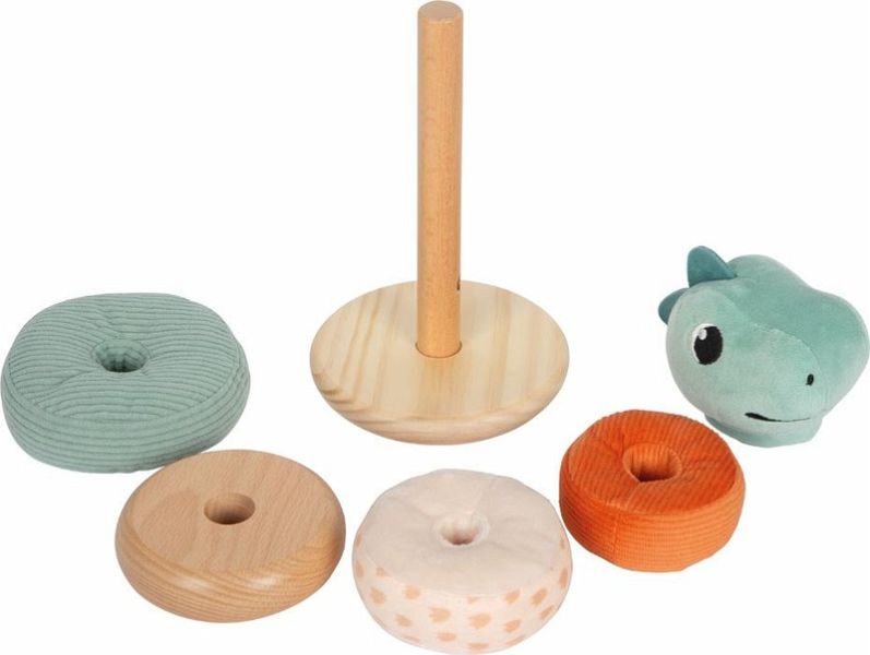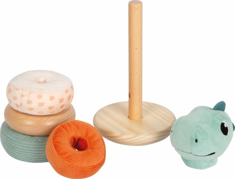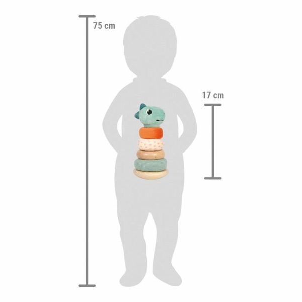 Mit dem Stapelturm Dino wird Motoriktraining zum Spielvergnügen! Dieses liebevoll gestaltete Motorikspielzeug begeistert kleine Dino-Fans mit einem charmanten Mix aus Plüsch und Holz, der nicht nur die Hand-Augen-Koordination und Feinmotorik schult, sondern auch dekorativ das Kinderzimmer verschönert. Ein fröhlich wippender Turm mit vier bunten Stapelringen und einem drolligen Dinokopf zum Stecken für langanhaltenden Spielspaß und die Förderung des Größen- und Farbenverständnisses. Für das Plus an Sicherheit sorgt ein beweglicher Pin. Der Stapelturm Dino verbindet modernes Design mit kindgerechtem Spielspaß und fördert dabei spielerisch die motorischen Fähigkeiten. Ausgestattet mit vier Stapelringen, drei aus Stoff und einem aus Holz, lädt dieses Motorikspielzeug zum Greifen, Stapeln und Entdecken ein. Der fröhliche Dino-Look und der abgerundete Boden, der das fertige Stapelkunstwerk sanft hin und her wippen lässt, machen den Turm zu einem echten Highlight im Kinderzimmer. So wird das Üben von Hand-Augen-Koordination, Feinmotorik und das Verständnis für Größen und Farben zum spielerischen Erlebnis. Die moderne Farbgebung macht ihn zudem zu einem niedlichen Hingucker, der für langanhaltende Freude sorgt und im Kinderzimmer kleine wie große Dino-Fans begeistert!