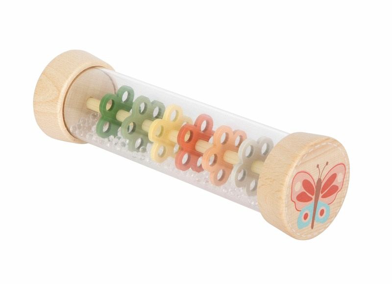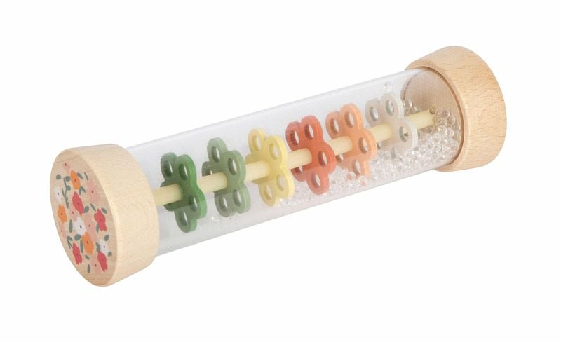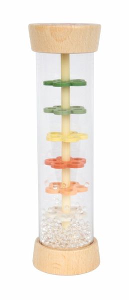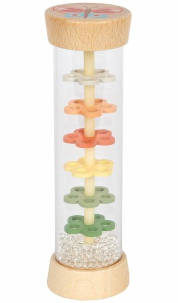 So klingt der Regen im Frühling! Dieser Regenmacher vereint sanfte Geräusche mit liebevoll gestaltetem Design und wird so zum sinnlichen Erlebnis für kleine Entdecker. Ob als beruhigendes Klangspielzeug, erstes Rhythmusinstrument oder farbenfrohes Rasselspielzeug: Der transparente Kunststoffkolben gibt den Blick frei auf glitzernde Kügelchen, die durch bunte Lochplatten in Blümchenform rieseln. Ein faszinierendes Spiel für Augen und Ohren, das Babys und Kleinkinder gleichermaßen begeistert! Der Regenmacher Kleine Freunde bringt die Magie von Regentropfen direkt ins Kinderzimmer visuell wie akustisch! Die kleinen Kügelchen im Inneren des Regenstabs erzeugen beim Rieseln durch sechs farbenfrohe Lochplatten in Blumenform ein angenehmes, sanftes Prasseln, das an fallenden Regen erinnert. Gleichzeitig ist der Regenmacher ein wahres Multitalent: Als Klangspielzeug, Rassel, Rhythmusinstrument oder beruhigendes Sinnesspiel begleitet er Babys und Kleinkinder in verschiedensten Spielmomenten. Dank der transparenten Röhre beobachten Kinder fasziniert das Spiel der glitzernden Kügelchen das trainiert gezielt die visuelle Wahrnehmung. Das gleichmäßige Rieseln der Kügelchen wirkt beruhigend, fördert das Hörverständnis und lädt zum Entspannen, Lauschen und Nachahmen ein. Auch zum Rollen und Rasseln für die Kleinsten geeignet!