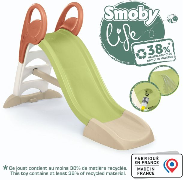 Die breiten Stufen und Sicherheitsgriffe geben Halt beim Hinaufsteigen. Der weiche Rutschauslauf reduziert die Geschwindigkeit und schützt beim Landen.