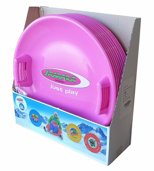 Jetzt kommt der Spaß auf die Piste. Die bunten Rutschteller von JAMARA lassen jedem Schneefan das Herz höher schlagen. Der Spielzeug Rutschteller ist aus widerstandsfähigem Kunststoff und ist sehr robust gegen Unebenheiten im Gelände. 60cm Durchmesser, Haltegriffe links und rechts und ein Leichtgewicht von weniger als 600g, lassen es zu das dieser Teller immer dabei sein kann wenn der Schneespaß beginnt.