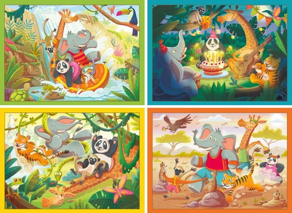 Das Konzept richtet sich an alle Puzzlefans ab 6 Jahren. Gemeinsam mit Freunden oder der Familie könnt ihr um die Wette speed puzzeln und dank der lustigen Aufgaben der Speedy Chips wird das Puzzeln zu einem interaktiven Erlebnis. Wähle eines der Puzzle, schlag auf den Buzzer und starte! Bist du an der Reihe einen Speedy Chip zu ziehen musst du die darauf abgebildete Aufgabe so schnell wie möglich erledigen, während deine Freunde die Zeit nutzen um zu puzzeln. Das Set enthält vier Puzzles mit jeweils 35 Teilen, einen Buzzer und 32 Speedy Chips und 4 Poster.