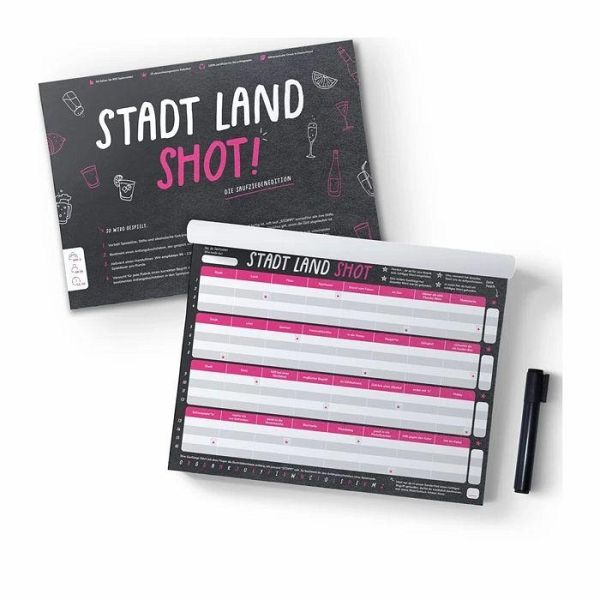 Den Spieleklassiker Stadt Land Fluss kennt wohl jeder. In der Trinkspielvariante STADT LAND SHOT geht es feucht-fröhlich her. Hierfür gibt es abwechslungsreiche Kategorien, die hervorragend zu allen Saufziegen passen und Sonderfelder für noch mehr Dynamik am Spieltisch. Enthält: 1x A4 Block mit 50 Blatt.