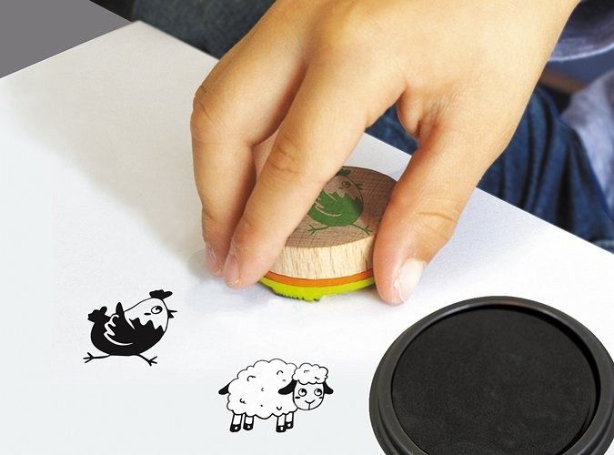 Umweltfreundliche Stempelsets für Kinder ab 3 Jahren. Die FSC zertifizierten Holzstempel in einer hochwertigen Kartonbox. Inhalt: 8 Holzstempel ø 4 cm und ein Stempelkissen mit abwaschbarer Tinte.