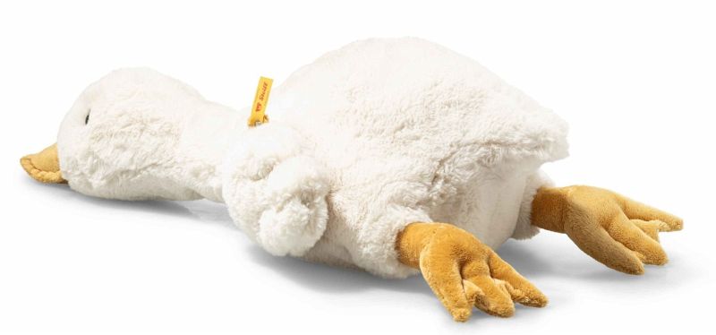Gans ganz groß! Mit 47 cm Größe verspricht die große Schwester der 26 cm kleinen Gilda Gans ein besonders großartiges Kuschelvergnügen. Das mit Granulat gefüllte Gewichtssäckchen im Bauch sorgt dafür, dass Gilda stabil liegt - das verschmuste Federtier, das sich perfekt zum Ankuscheln eignet.