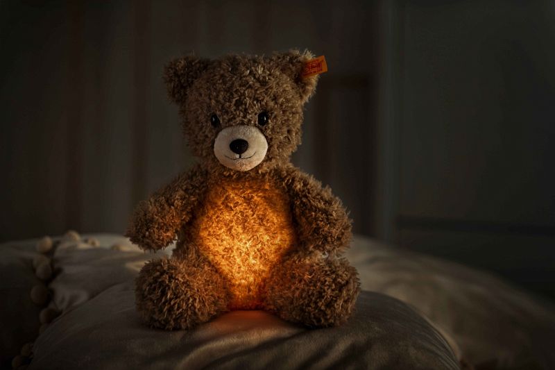 Caspar Teddybär darf in keinem Kinderzimmer fehlen. In seinem Bauch versteckt sich ein warmweißes Nachtlicht. Somit ist Caspar ein kuschelweicher Spielgefährte am Tag und ein sanft leuchtender Beschützer bei Nacht. Das Nachtlicht ist mit einem Sicherheits-Reißverschluss versehen und kann zum Waschen und Laden entnommen werden.